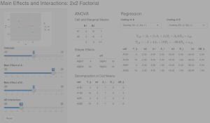 Launch this web application and experiment with factorial designs until you understand the key concepts of main effects and interactions in a factorial design.